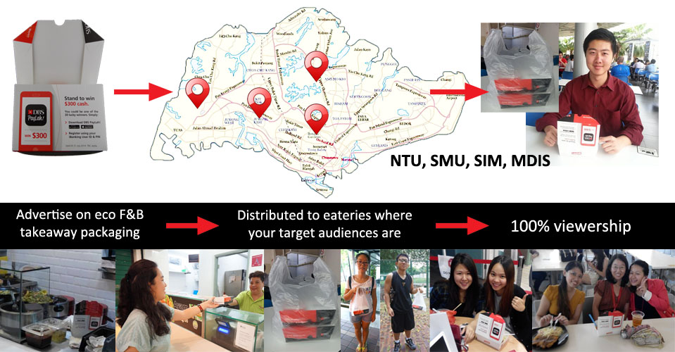 LunchAd Media - Advertising on F&B takeaway packaging, distributed to eateries where your target audiences are. LunchAd Media is patented: 200108117-3 Registrar of Patents, IPOS Singapore