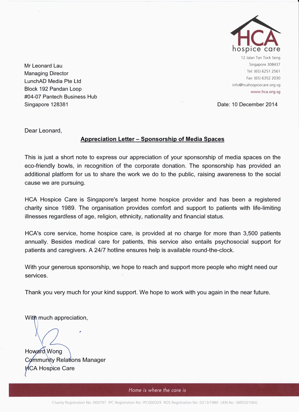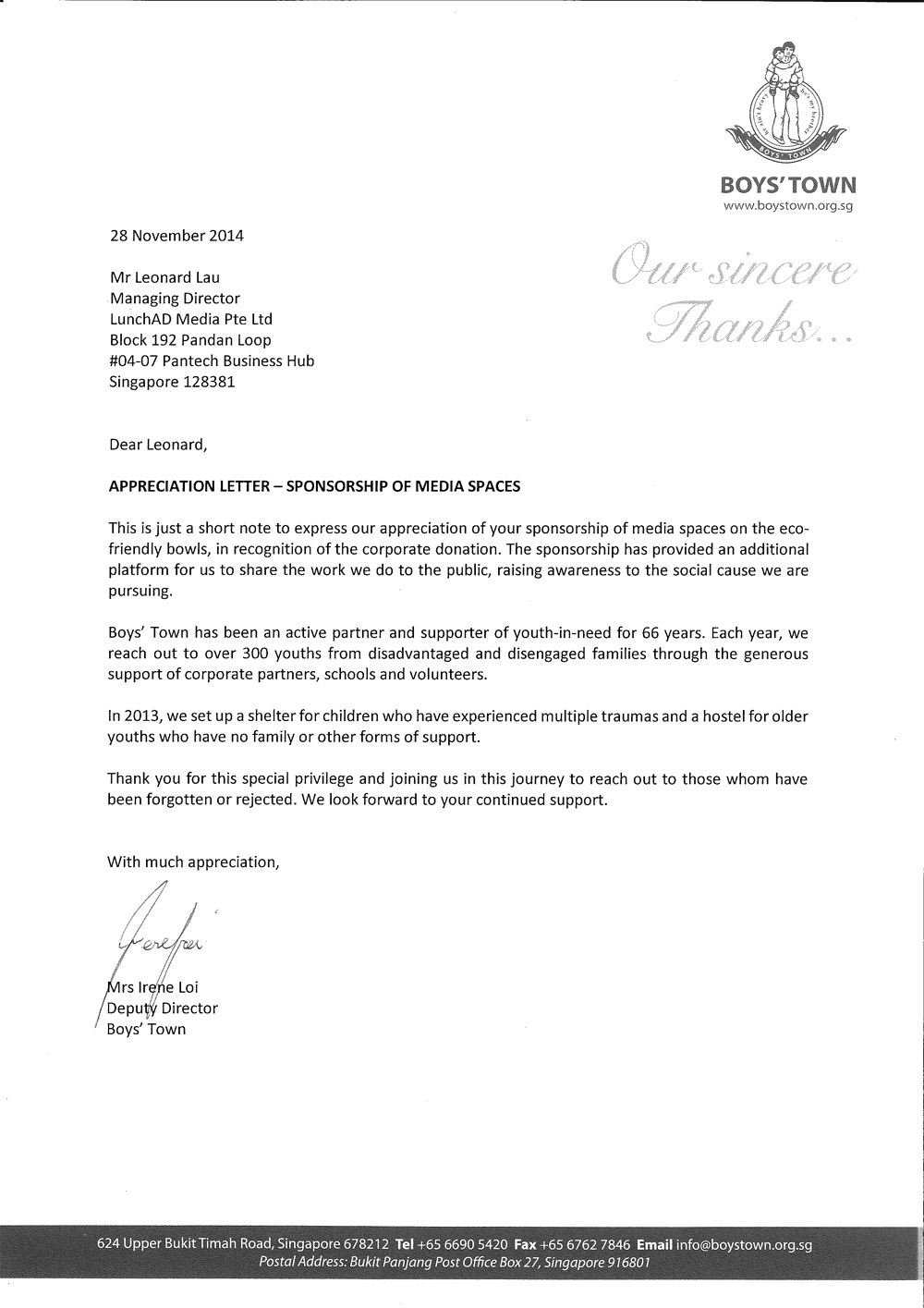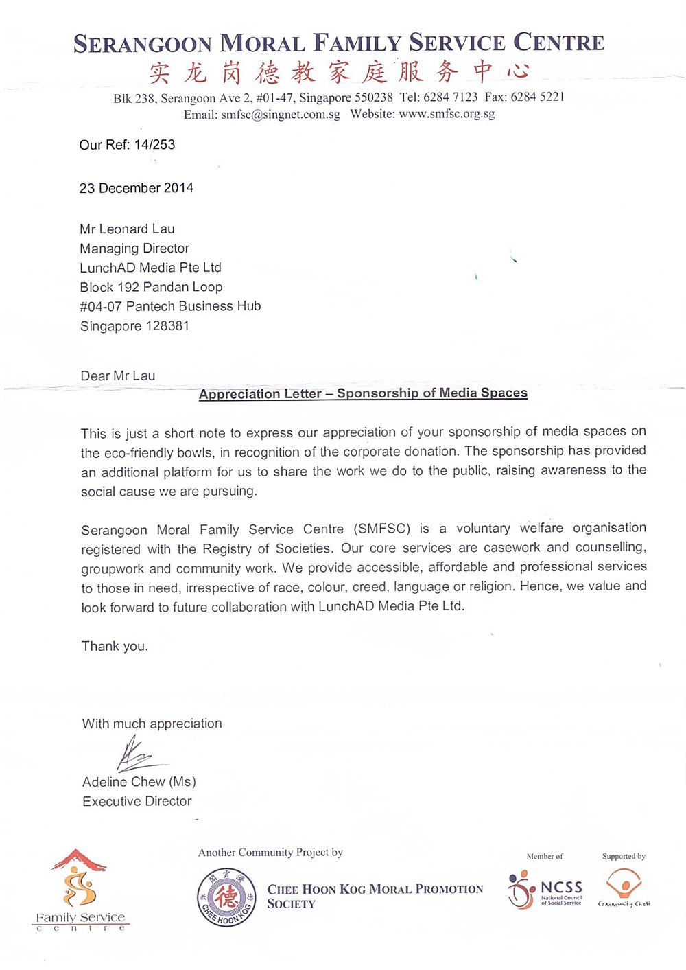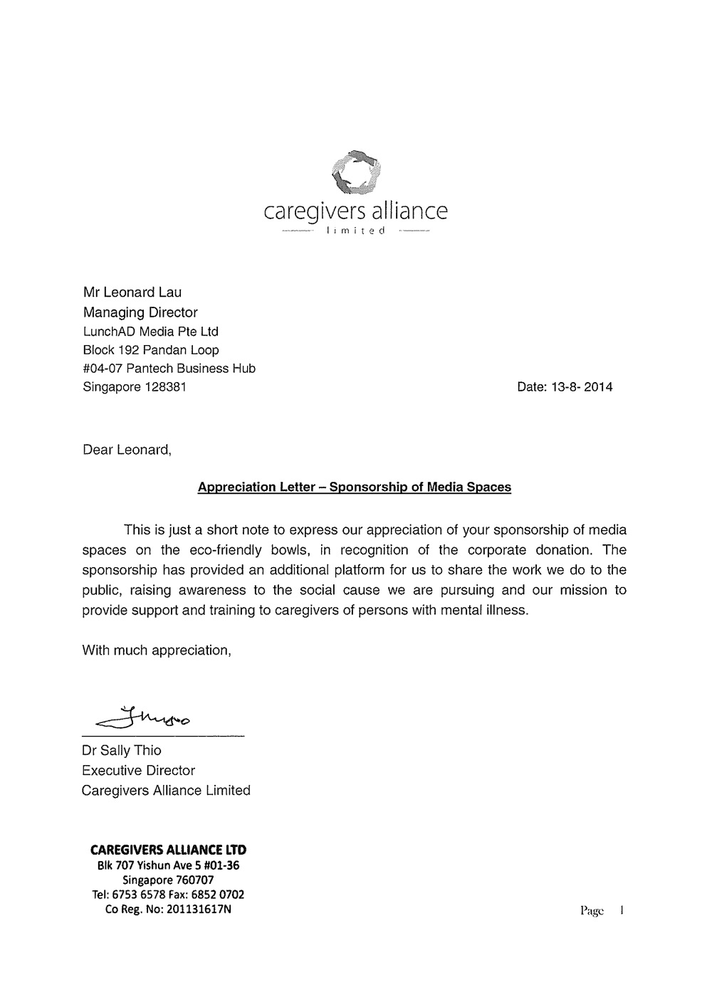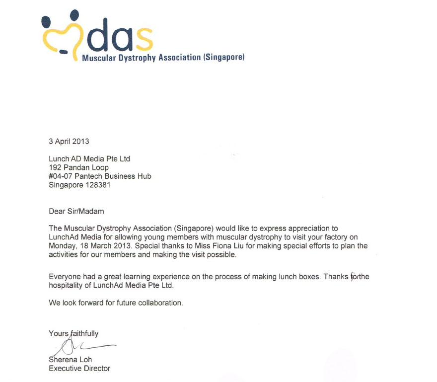 "We have been greatly encouraged in our work serving our clients with intellectually disability when we are joined by organisations like LunchAd Media in creating awareness for the intellectually disabled community. We thank you for giving us the opportunity to work with you and you will continue this initiative to enrich the lives of the community."