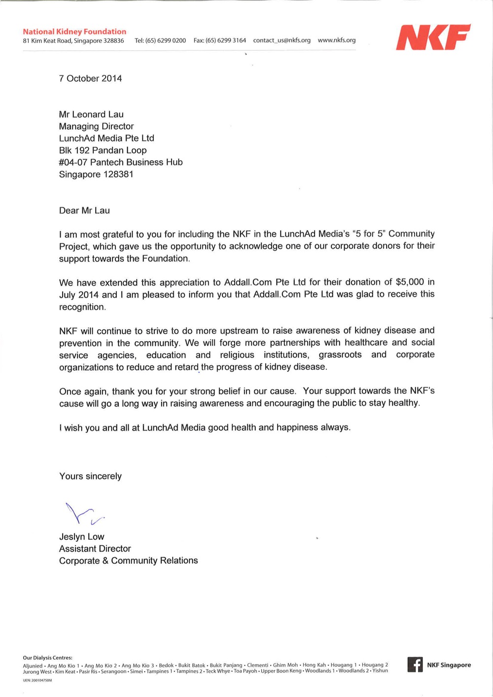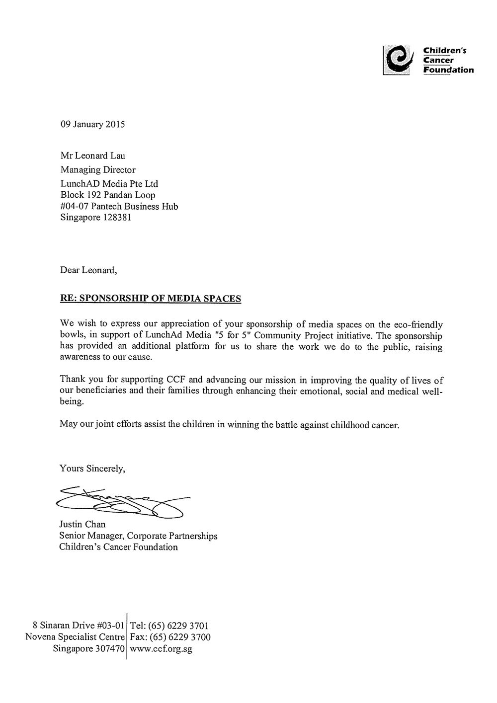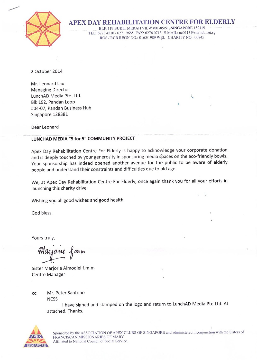 Congratulations to LunchAd Media on winning the Singapore Creative CSR Award 2014. The '5 for 5 initiative' has been an innovative platform in attracting businesses to participate in corporate giving.